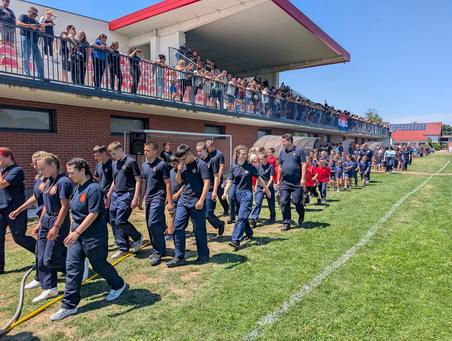Natjecanje za članove vatrogasne mladeži održalo se na glavnom terenu NK Belišće, dok su članovi pomlatka svoju vježbu izvodili na rukometnom terenu u neposrednoj blizini.