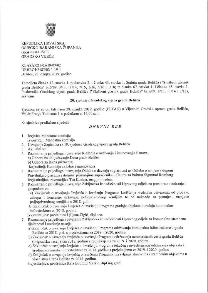 20. sjednica Gradskog vijeća grada Belišća