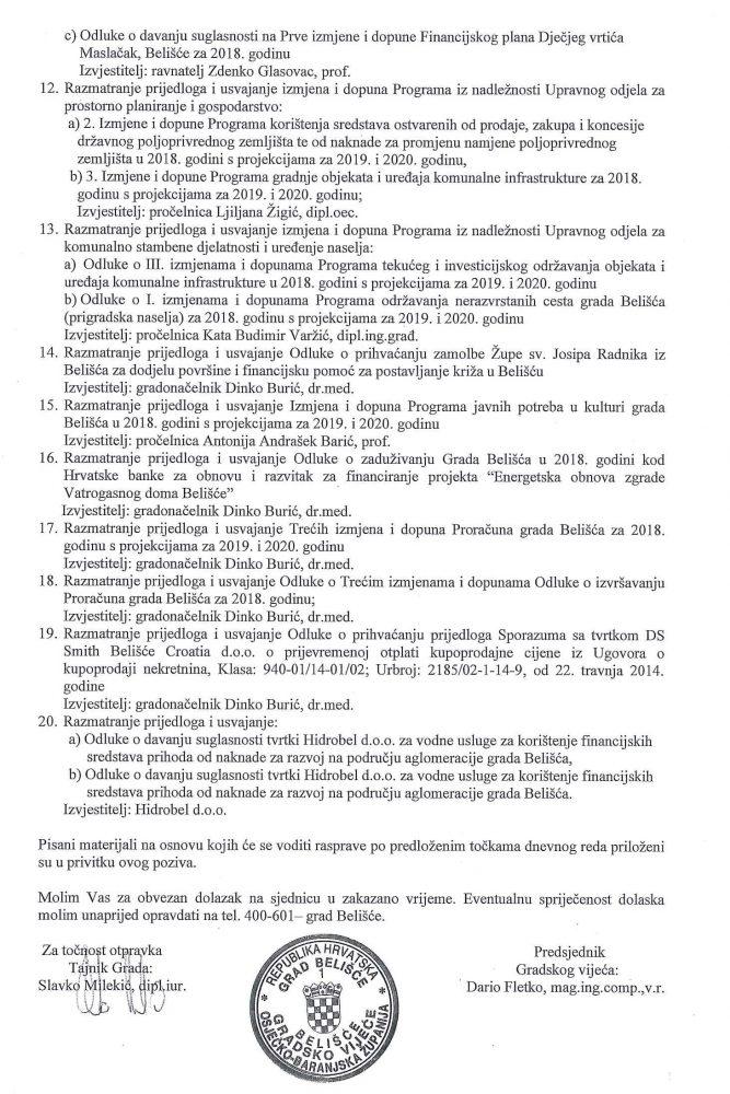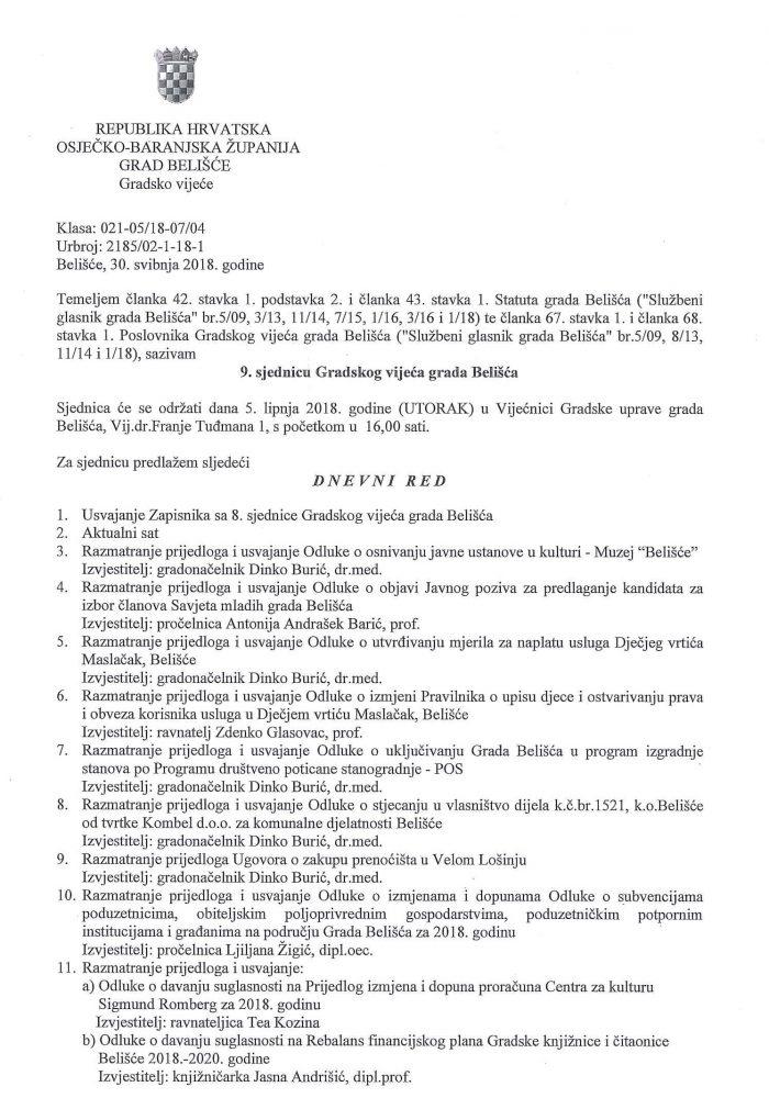 Dnevni red 9. sjednice Gradskog vijeća grada Belišća