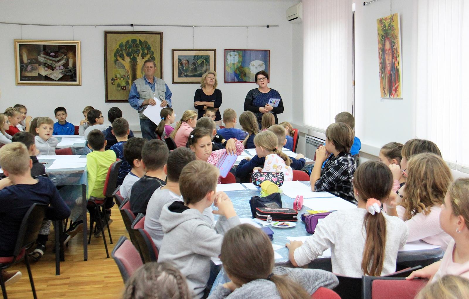 U sklopu obilježavanja Mjeseca hrvatske knjige članovi Likovne udruge Bel-Art održali su likovno – literarnu radionicu s učenicima OŠ Matije Petra Katančića. Na radioncu odazvale su se učiteljice Jadranka Špiranović i Verica Jezdić koje su s velikom spremnošću bile voljne dovesti svoje trećaše i četvrtaše na upoznavanje s umjetnicima. Na samom početku knjižničarka Sandra Miljački Andrić pročitala je priču Kašmira Huseinovića “Boje” putem koje su djeca mogla obnoviti svoje znanje o vrstama boja te naučiti da boje mogu u nama probuditi određene osjećaje.