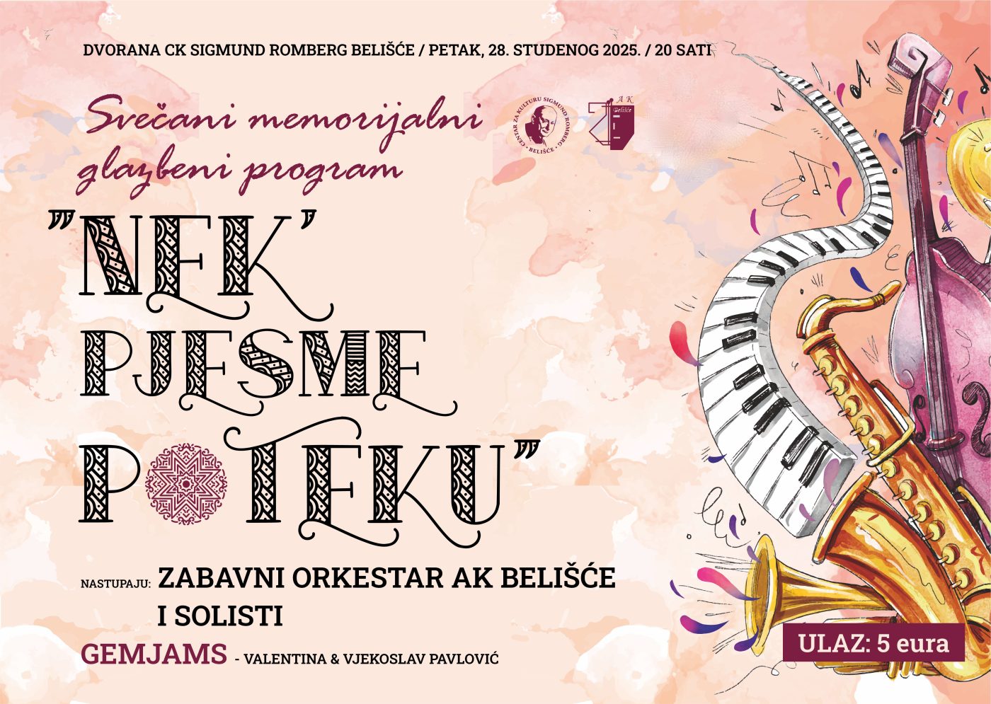 U petak, 28. studenog 2025. godine, u 20 sati u dvorani Centra za kulturu Sigmund Romberg održat će se posljednji koncert u okviru 48. Rombergovih glazbenih večeri, svečani memorijalni program pod nazivom “Nek’ pjesme poteku”.