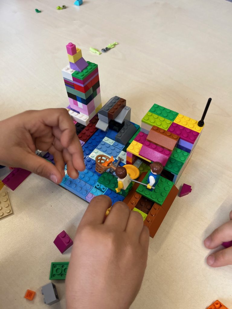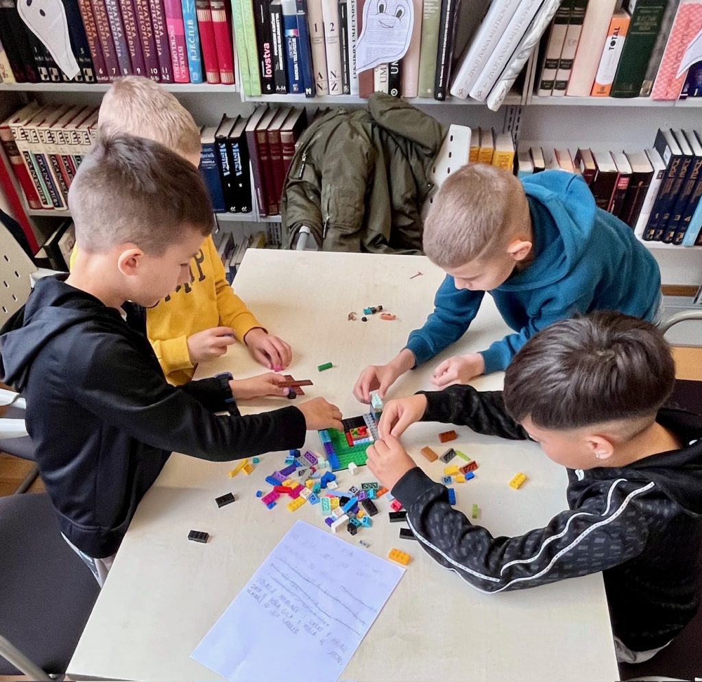 Prisutni učenici podijelili su se u manje grupe od kojih je svaka grupica prvo trebala osmisliti i napisati originalnu, vlastitu kratku priču. Nakon što su priče napisali i pročitali jedni drugima, učenici su dobili Lego kockice i figurice kako bi pomoću njih izgradili svoje maštovite priče. Rezultat njihove kreativnosti bili su genijalno složeni Lego setovi.
