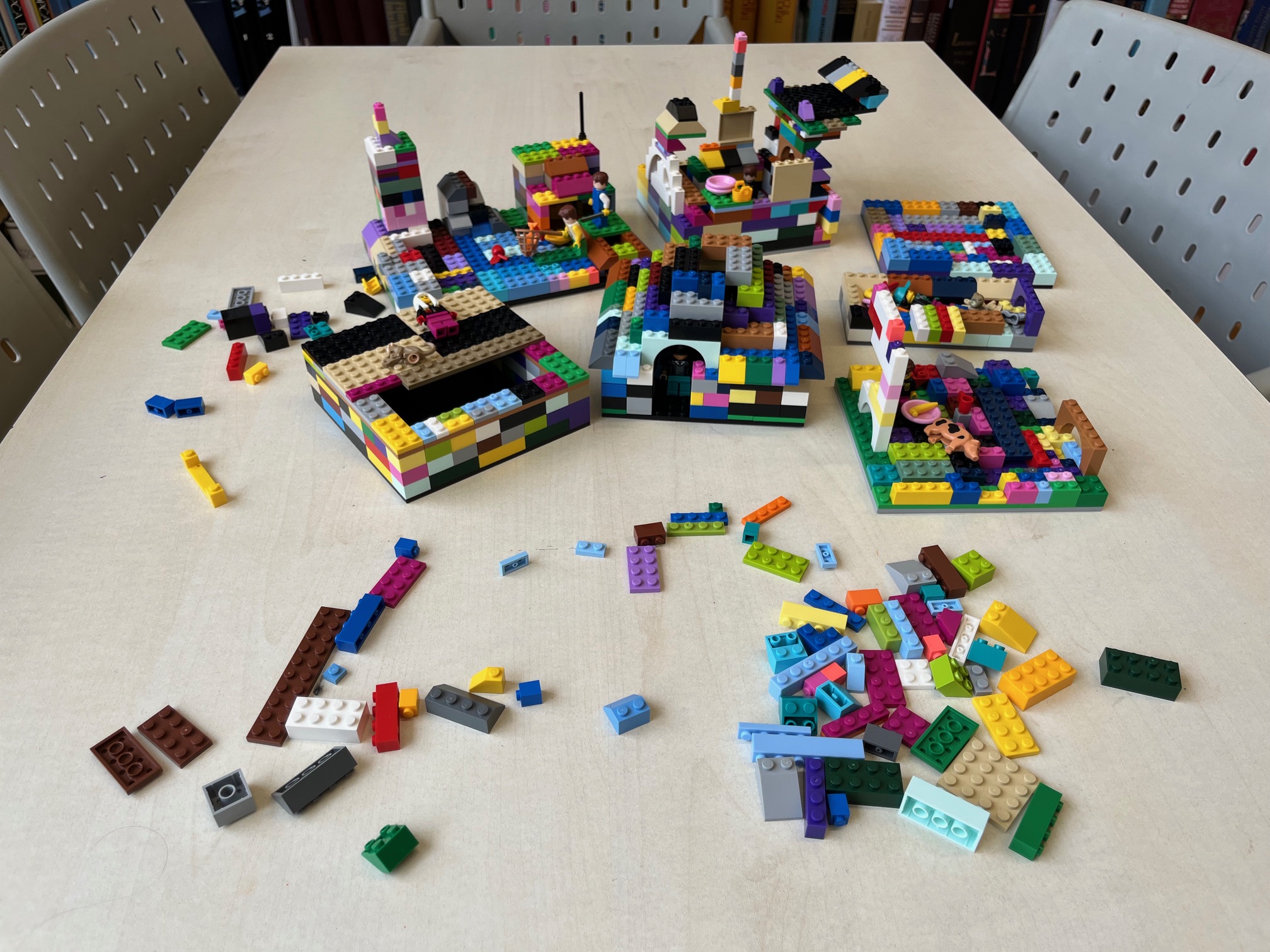 Prisutni učenici podijelili su se u manje grupe od kojih je svaka grupica prvo trebala osmisliti i napisati originalnu, vlastitu kratku priču. Nakon što su priče napisali i pročitali jedni drugima, učenici su dobili Lego kockice i figurice kako bi pomoću njih izgradili svoje maštovite priče. Rezultat njihove kreativnosti bili su genijalno složeni Lego setovi.
