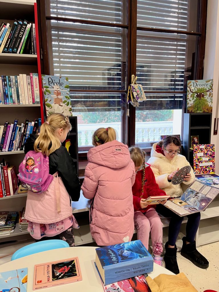Pojedinim učenicima ovo je bio prvi susret s knjižnicom jer u svojoj malenoj školi nemaju knjižnicu, a najbliže veće, gradske knjižnice su im upravo Knjižnica Belišće i Gradska knjižnica Beli Manastir. Svi su zato iskoristili ovaj posjet kao priliku da pregledaju, istraže i upoznaju rad i prostor jedne knjižnice. Najviše su se zabavljali na dječjem odjelu Knjižnice gdje su pregledavali razne slikovnice i knjige za djecu, ali i dječje časopise, društvene igre i dvd-ove. Tijekom zabavljanja u Knjižnici jedna je učenica dobila i pravo poklon-iznenađenje od knjižničarki Vlaste i Dijane povodom svog osmog rođendana koji je proslavila baš jučer.