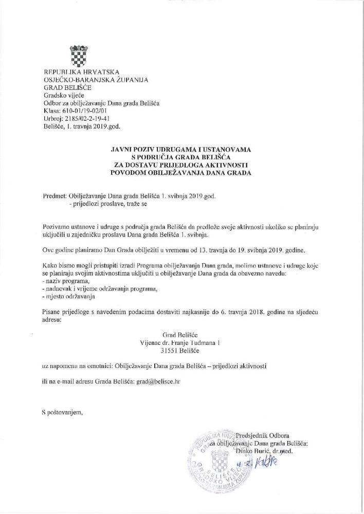 01.04.2019.| Natječaji i javni pozivi grada Belišće| Ana