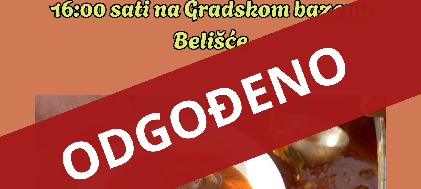 Temeljem preporuka Nacionalnog kriznog stožera za kontrolu i suzbijanje afričke svinjske kuge na području RH, a u svezi javnih okupljanja na područjima koja su u zoni zaštite, zoni nadziranja ili u neposrednoj blizini istih, obavještavamo javnost da se manifestacija „11. DRŽAVNO NATJECANJE U KUHANJU ČOBANCA“ u Belišću koja se trebala održati 4. 10. 2025. godine (SUBOTA), odgađa.