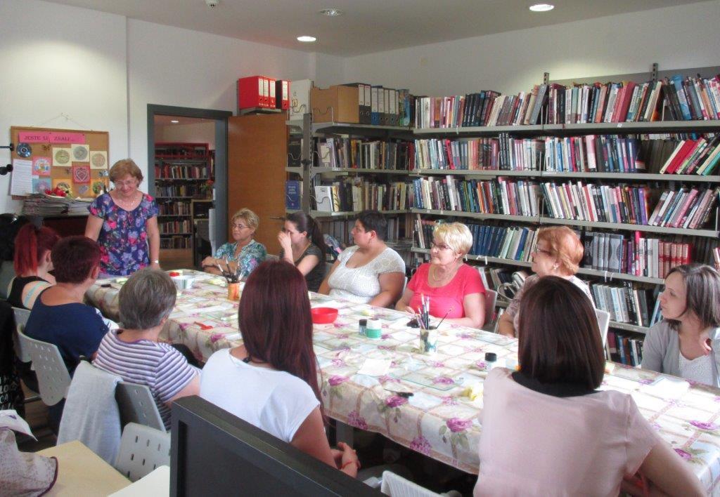 Na radionici je bilo ukupno dvanaest žena različite dobi koje su naučile tehniku raspucavanja s krekl lakom koristeći dekupaž papir na staklenoj tacni. Svi gotovi radovi ispali su jako lijepi, a samu tehniku pokazala im je voditeljica radionice knjižničarka Jasna Andrišić. Ona ih je također upoznala s mogućim radionicama koje će se održati na jesen, a radi se o pletenju, heklanju i zlatovezu.