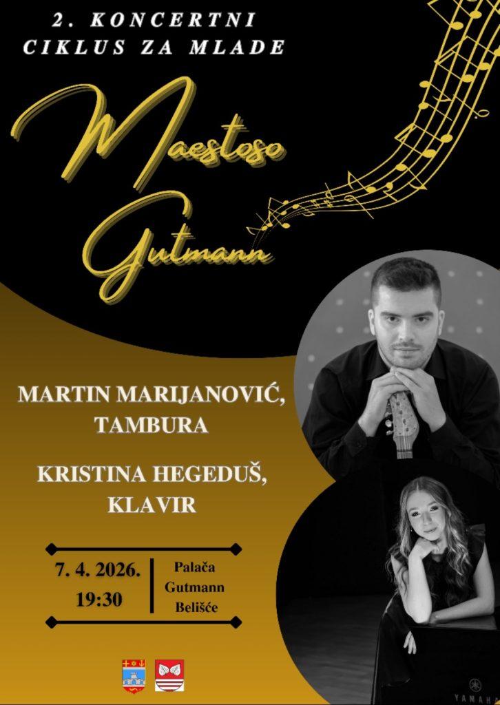 Prvi koncert u sklopu 2. Koncertnog ciklusa za mlade Maestoso Gutmann održat će se u utorak, 7. travnja u 19:30 sati u Palači Gutmann, a nastupit će Martin Marijanović na tamburi i Kristina Hegeduš na klaviru.