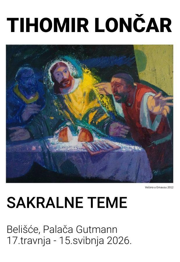 U petak, 17. travnja 2026. godine u 19:30 sati u Palači Gutmann u Belišću bit će svečano otvorena izložba uglednog hrvatskog akademskog slikara Tihomira Lončara pod nazivom „Sakralne teme“, u sklopu programa obilježavanja Dana grada Belišća.