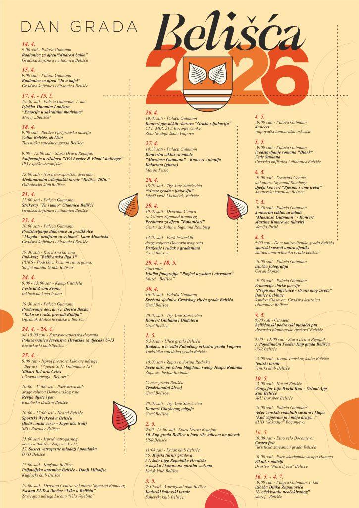 Dan grada Belišća, 1. svibnja, i ove se godine obilježava raznovrsnim i sadržajnim programom namijenjenim svim generacijama. Građane i posjetitelje očekuju brojna kulturna, zabavna i sportska događanja.
