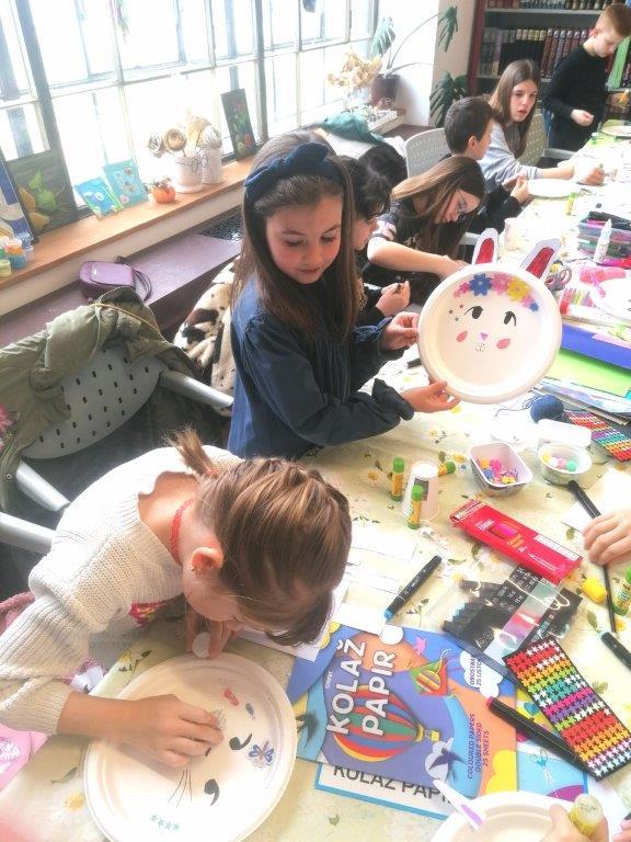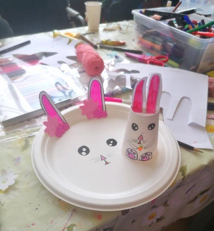 Na samom početku radionice psihologinje su prvo prisutnim mališanima objasnile i pokazale što će raditi, nakon čega su se oni vrijedno i vješto prihvatili posla. Tako su za izradu zečića koristili papirnate tanjure i čaše, škare, ljepila, kolaž papir, flomastere, vunu, špage, šljokice te naljepnice u obliku cvjetića, leptirića i sličnih motiva. Napravili su super maštovite, vesele zečiće koje su po završetku radionice jedni drugima predstavili.